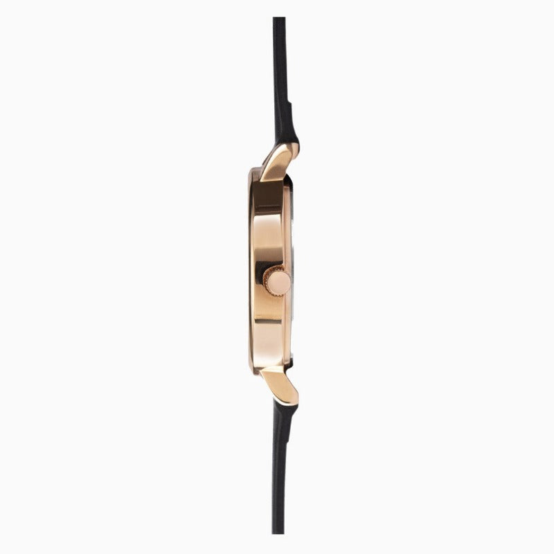 The 32mm case, crafted from base metal, houses a precise quartz movement, ensuring accurate timekeeping. A comfortable black PU strap completes the look.