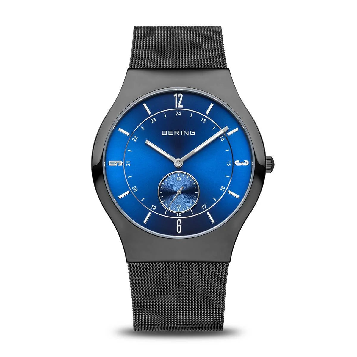 The silver-toned case houses a precise movement with a handy date function, adding a touch of practicality to its undeniable elegance. Completing the look is a comfortable blue Milanese mesh strap, ensuring a perfect fit and a sophisticated aesthetic.
