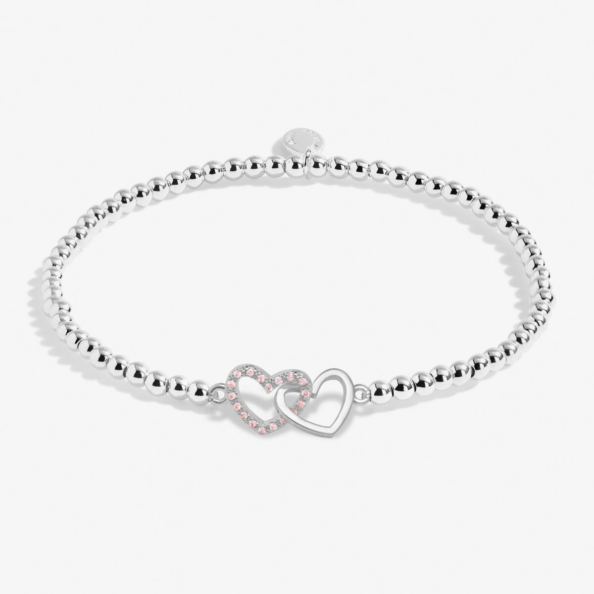 This "A Little Beautiful Bestie" bracelet from Joma features two delicately interlocking double heart charms, a perfect symbol of a cherished friendship.