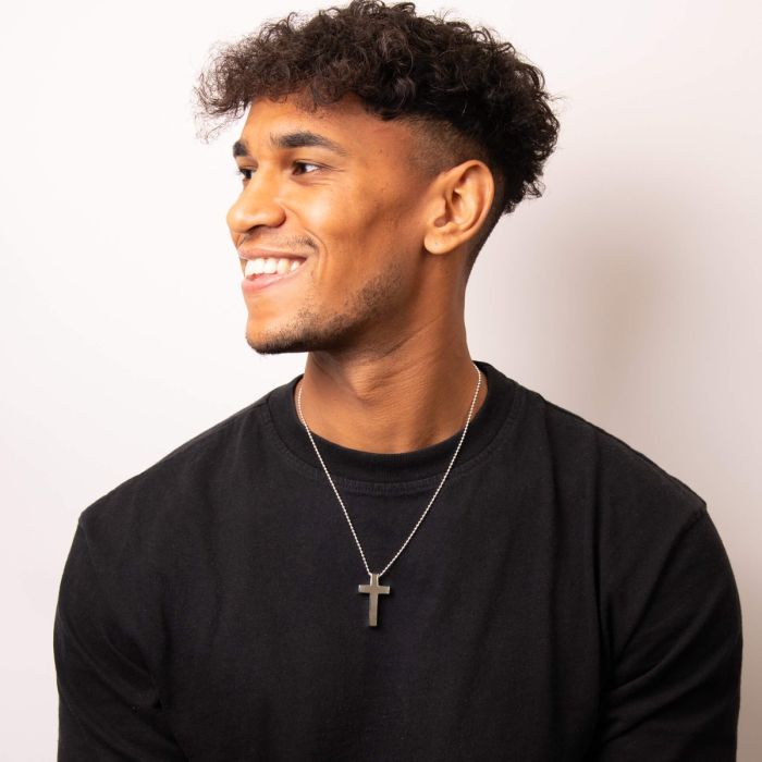 This sterling silver pendant, crafted in the shape of a cross, boasts a gleaming, highly polished finish. It hangs gracefully from a delicate 20-inch ball chain, ready to add a touch of timeless elegance to any neckline.