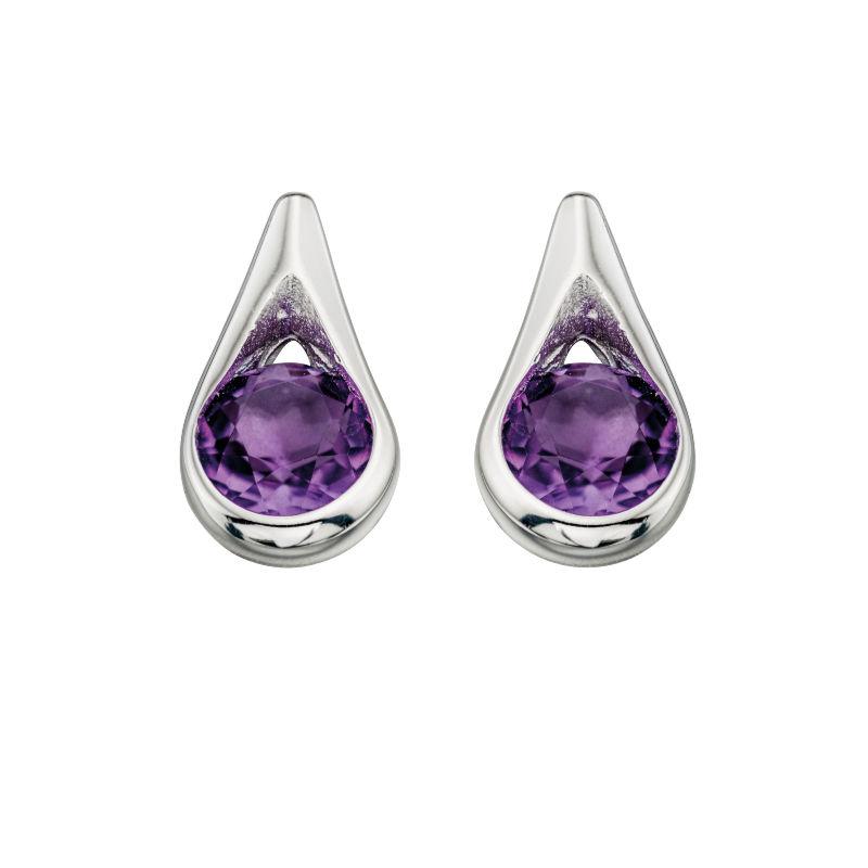 Crafted from gleaming sterling silver, these earrings feature captivating round amethyst gemstones. Each amethyst is nestled within a delicate teardrop setting, creating a look that is both classic and contemporary. A beautiful choice any time of year, these earrings hold special significance for those born in February, as amethyst is their birthstone.