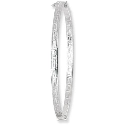 Crafted from gleaming sterling silver, these oval bangles are a beautiful expression of classic design. Their elegant form features an intricate Greek key pattern, a timeless motif that whispers of ancient artistry. The hinged design allows for effortless wear, while the polished finish adds a touch of luxurious brilliance.