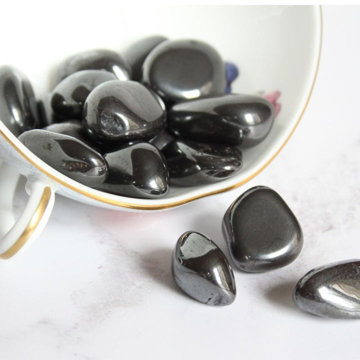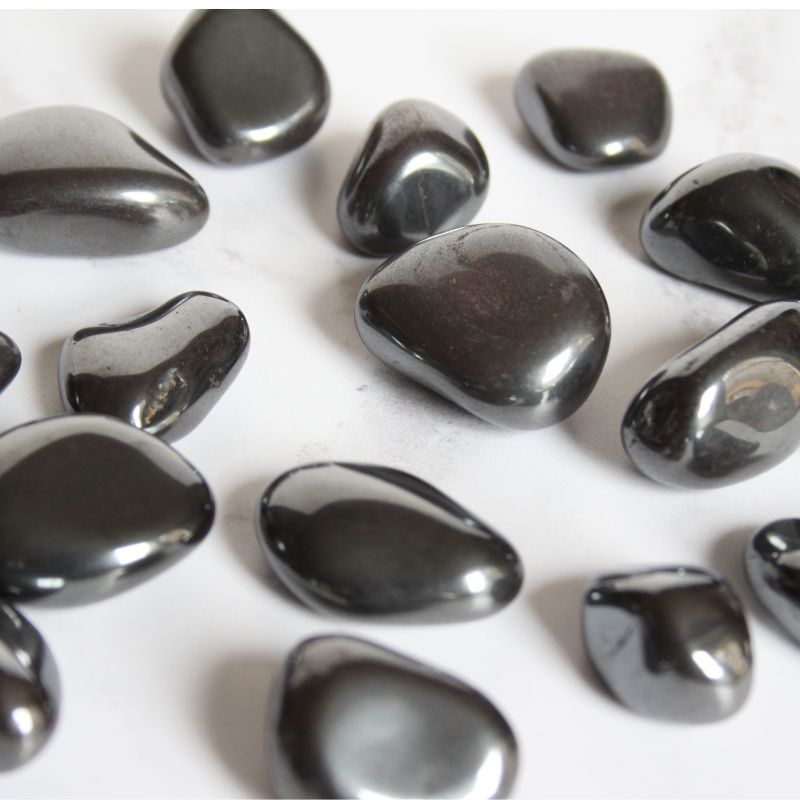 These polished hematite tumblestones, sourced from Brazil, possess a captivating grey hue.