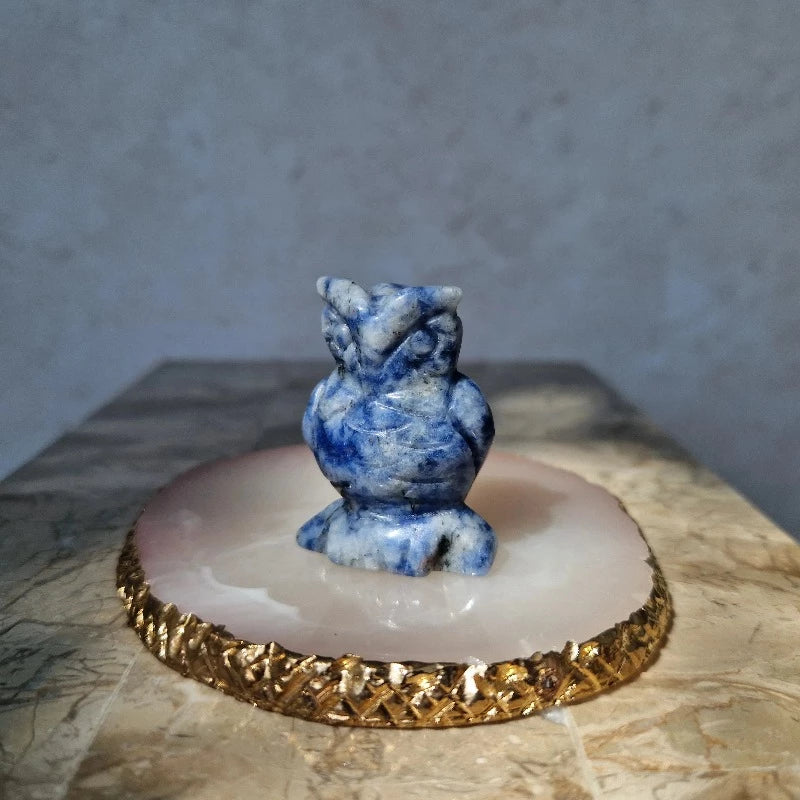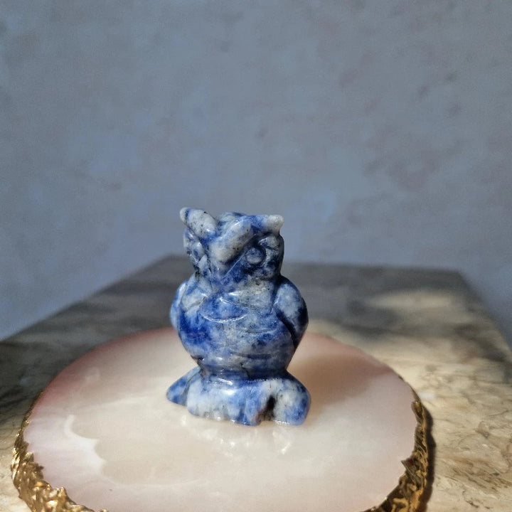 This wise owl, a charming symbol of knowledge and intuition, has been meticulously carved from rich, blue sodalite.