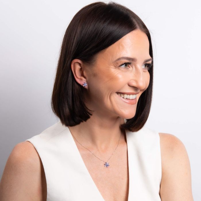 9ct White Gold Tanzanite & Diamond Flower Earrings