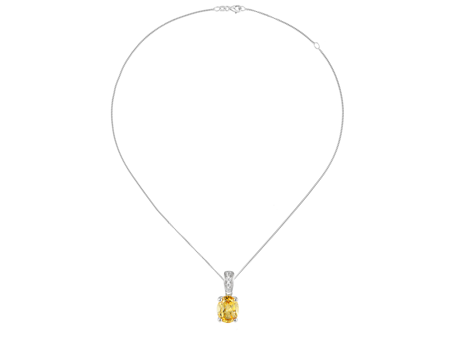 This elegant pendant showcases a captivating oval-cut amber citrine, its warm hues radiating a gentle glow. Surrounding this mesmerizing gemstone is a halo of sparkling cubic zirconia stones, adding a touch of brilliance and fire.