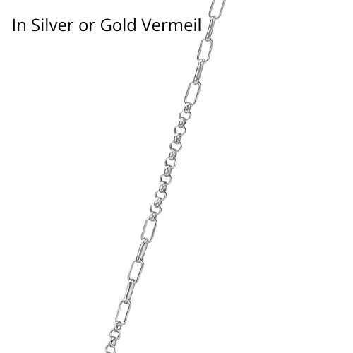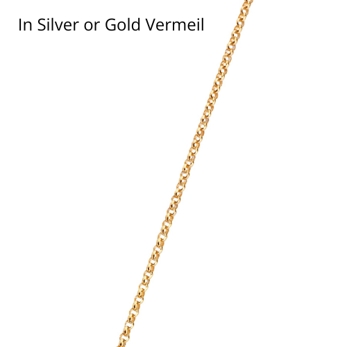 Choose from the warm glow of gold vermeil or the cool elegance of sterling silver to perfectly complement your style. A selection of chain styles allows you to further personalise your piece: opt for the classic simplicity of a belcher chain, the delicate charm of an oval link, or the intricate texture of a multi-link design.
