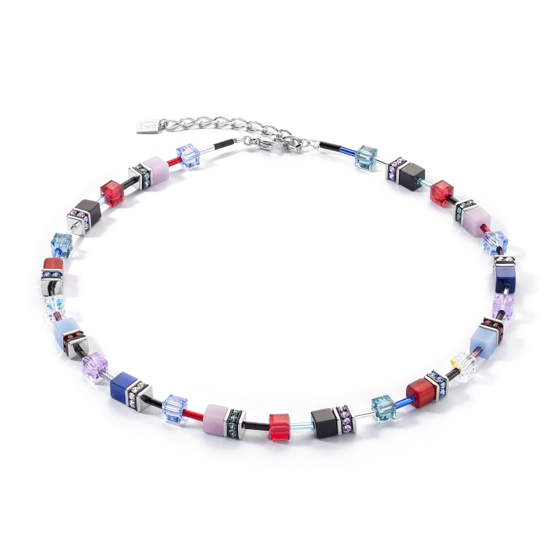 Coeur de Lion Iconic GeoCube® Necklace Red,Blue, Liliac 2838/10-0330