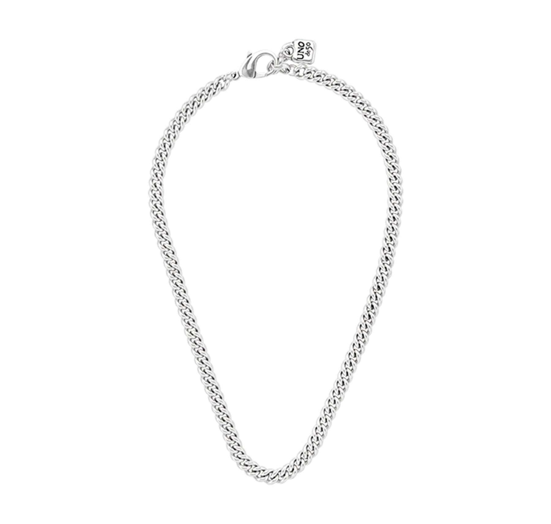 Handcrafted in Spain, this Uno de 50 Jupiter necklace boasts a unique braided chain and a secure padlock clasp.