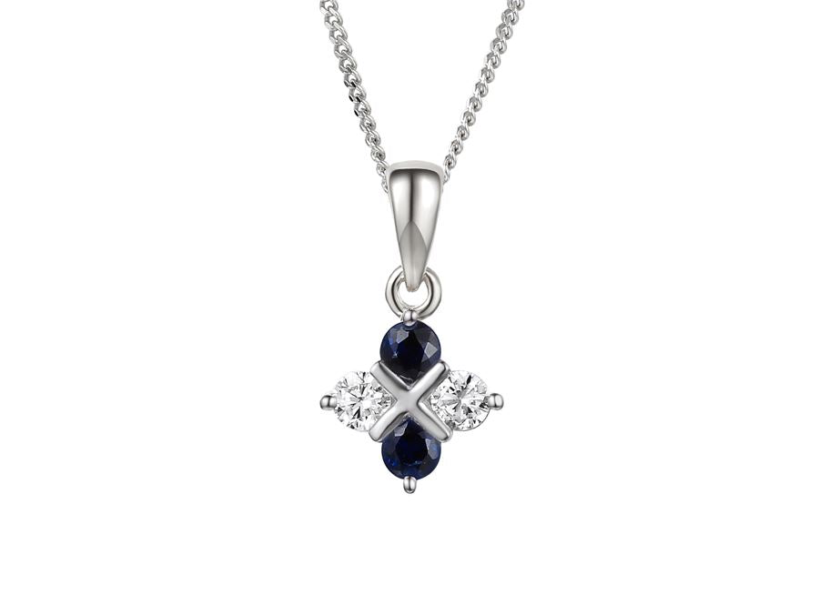 Silver Real Sapphire and CZ Checkerboard Pendant