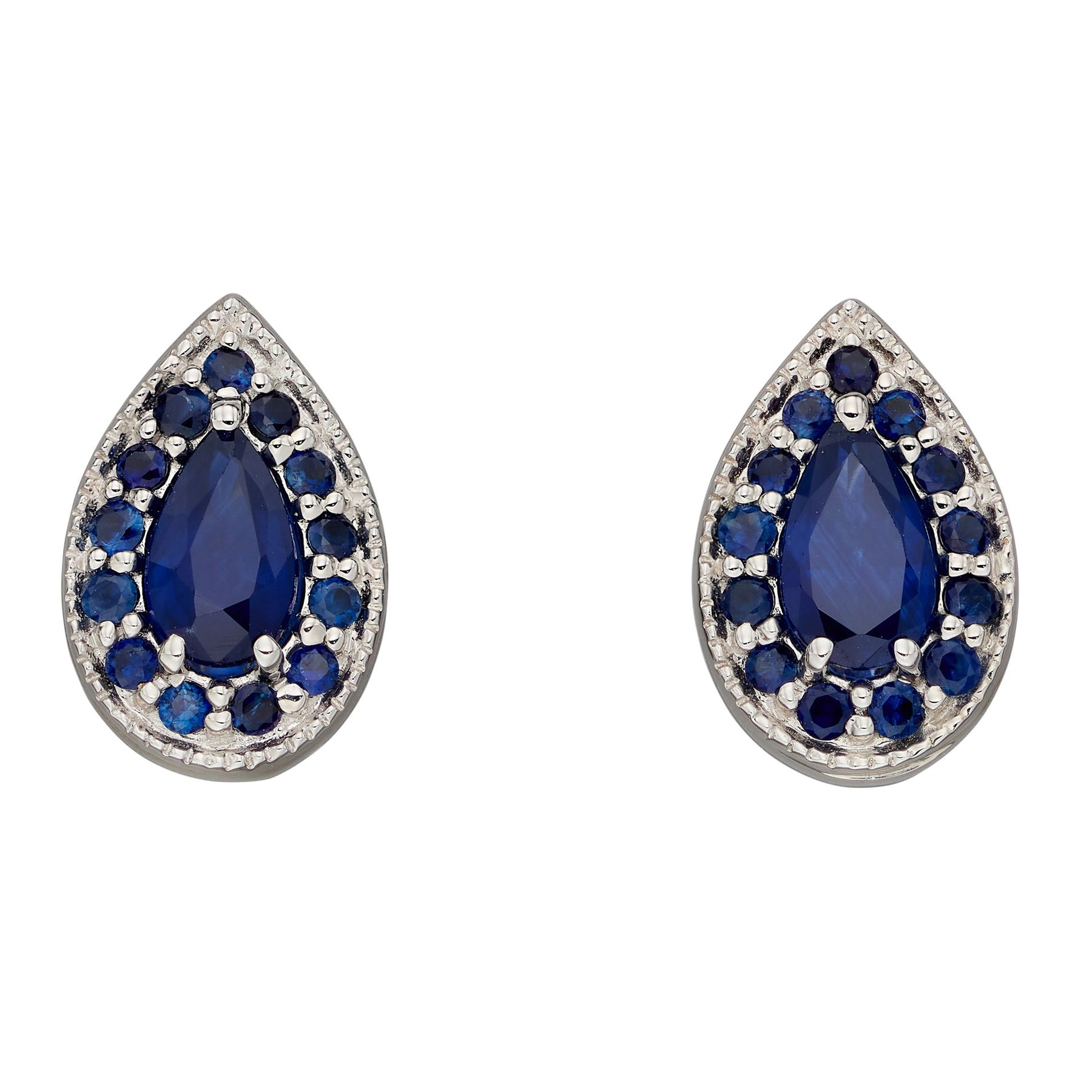 Each earring features a captivating cluster of sapphires arranged in a graceful teardrop shape. At the centre of this cluster, a single, mesmerizing sapphire draws the eye, surrounded by a halo of smaller, brilliant-cut sapphires. With every movement, these smaller stones shimmer and catch the light, creating a breathtaking display of sparkle.