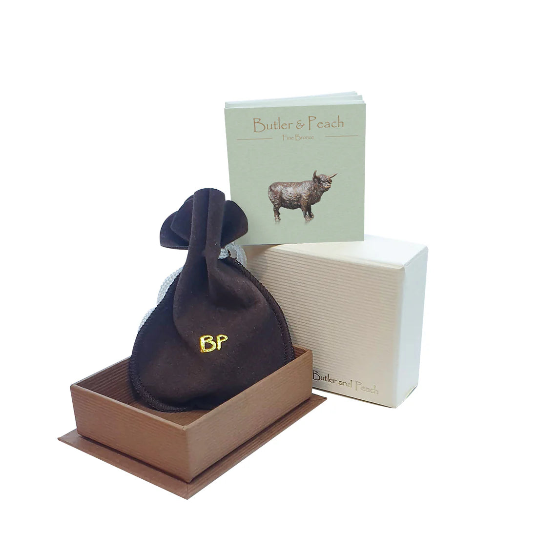 Presented in a beautifully printed box and nestled within a protective soft pouch, your otter also arrives with a collector's leaflet, introducing you to the wider world of the Butler & Peach collection.
