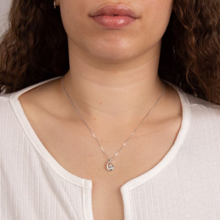 From a delicate chain hangs a teardrop pendant, its elegant shape catching the light. The pendant itself shimmers with the brilliance of expertly cut cubic zirconia, a beautiful and affordable alternative to diamonds.