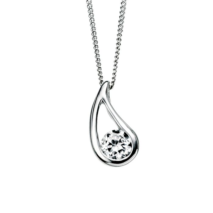 Silver Pendant with White River Pearl and Cubic Zirconia