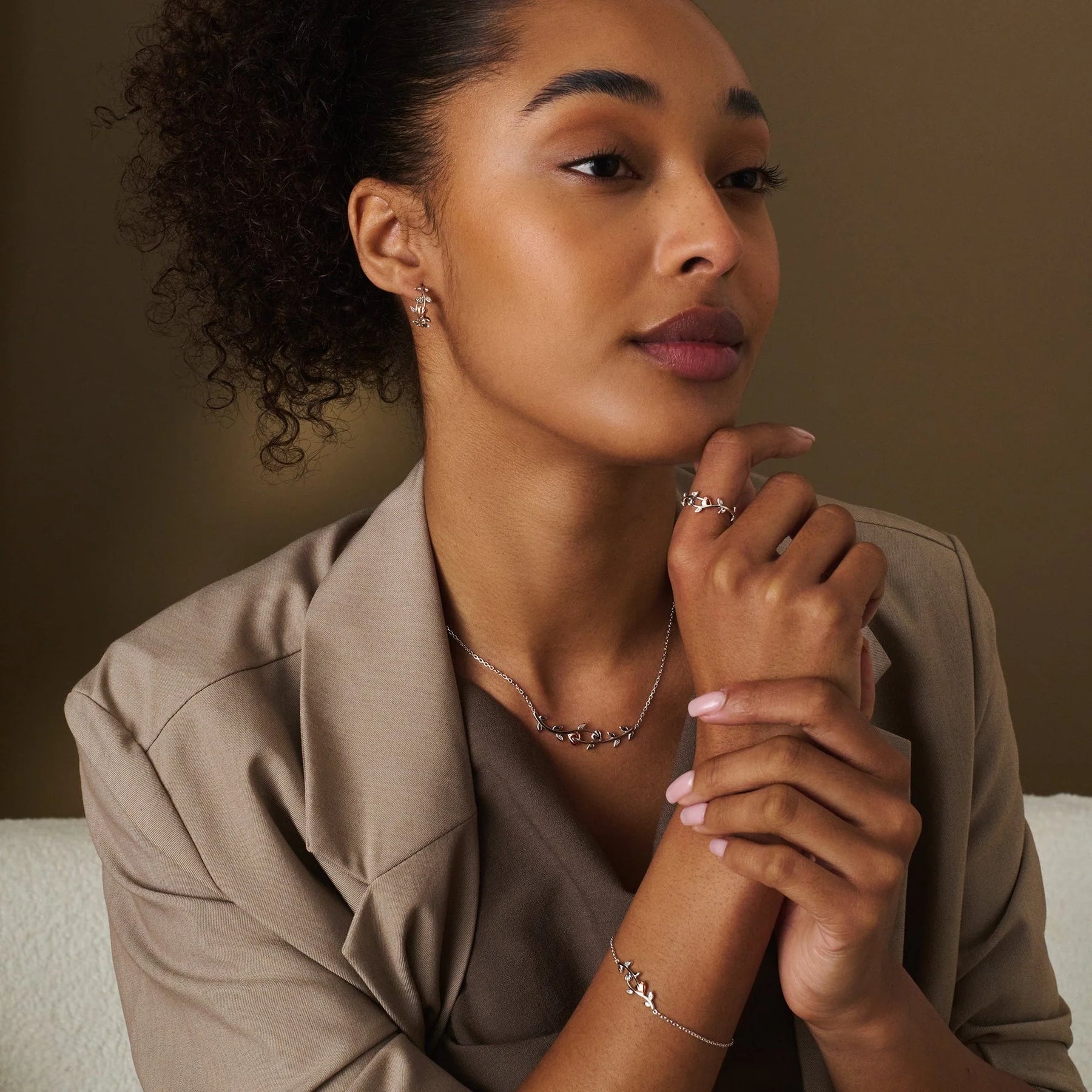 Roots anchored deep in the rich earth, and branches reaching towards the glorious warmth of the sun… the Tree of Life® symbolises creation, renewal and an endless desire for growth and is beautifully depicted in our elegant Tree of Life® Sterling Silver Vine Half-Hoop Earrings with Topaz.
