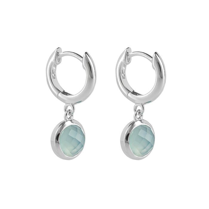 Silver Hoop Earrings with Round Blue Chalcedony Charm