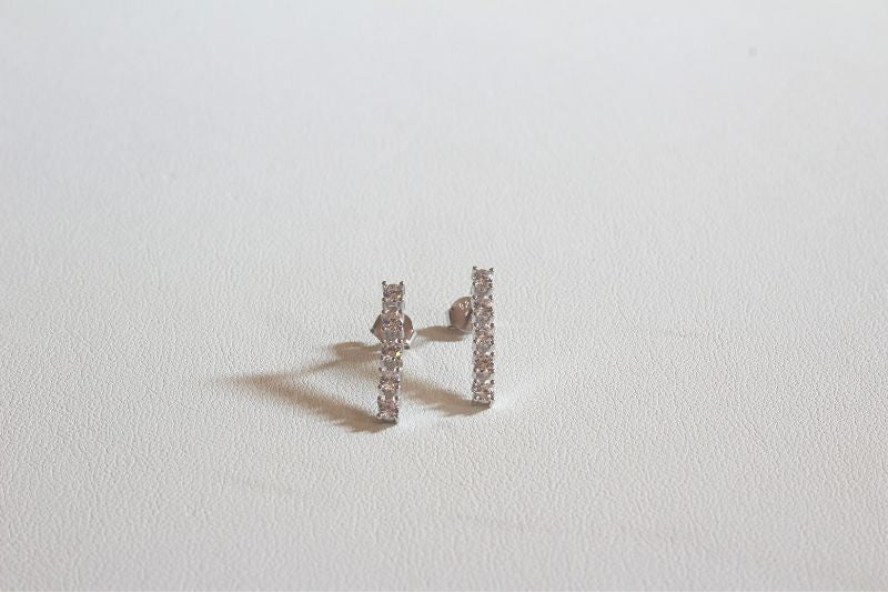 These elegant stick earrings, crafted from gleaming 925 sterling silver, are designed to catch the light and the eye. Five dazzling cubic zirconia stones are meticulously set along each earring, adding a touch of sparkle.