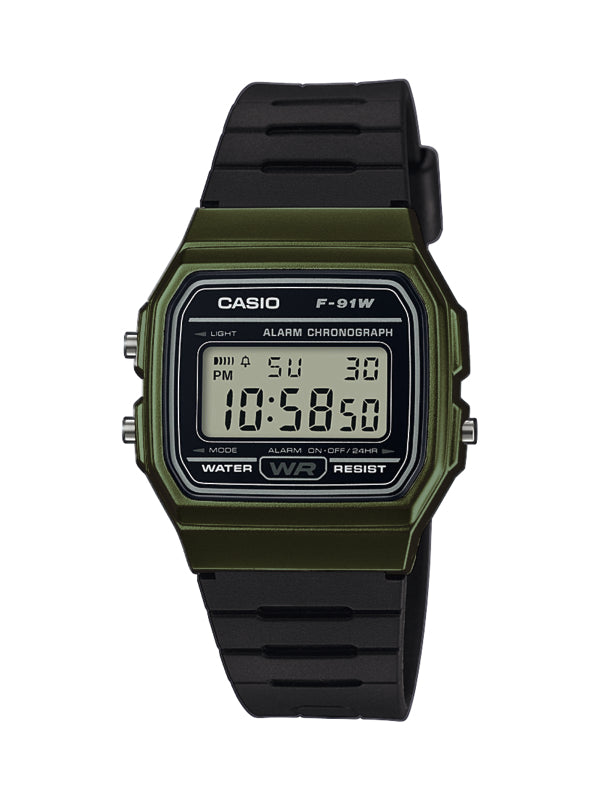 Casio Unisex Watch in Black & Khaki Green Plastic F-91WM-3AEF