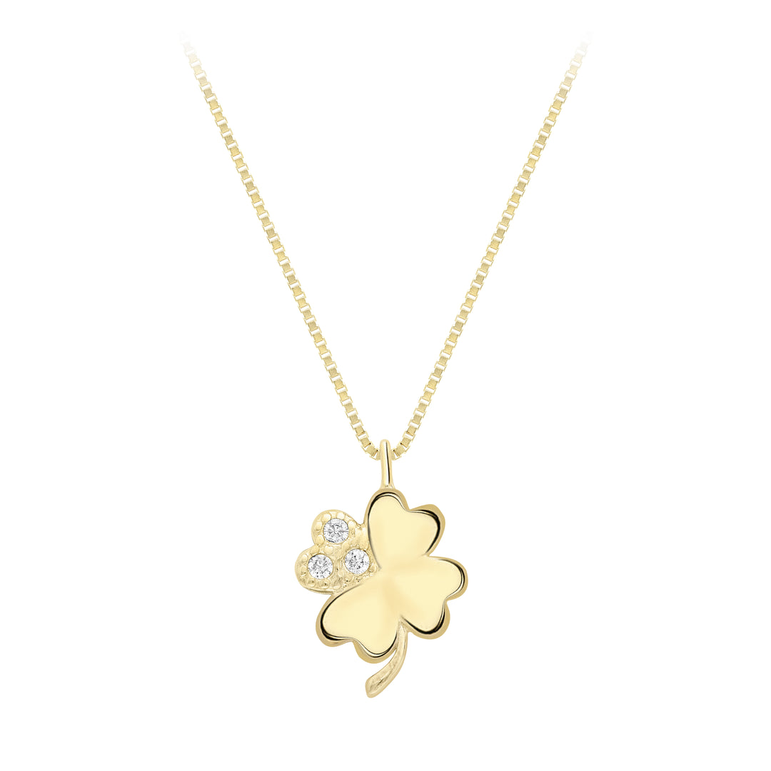 Gold and Cubic Zirconia Four Leaf Clover Pendant and Chain
