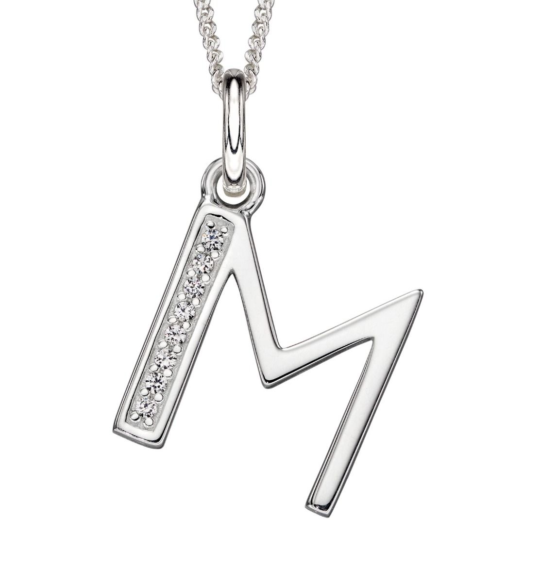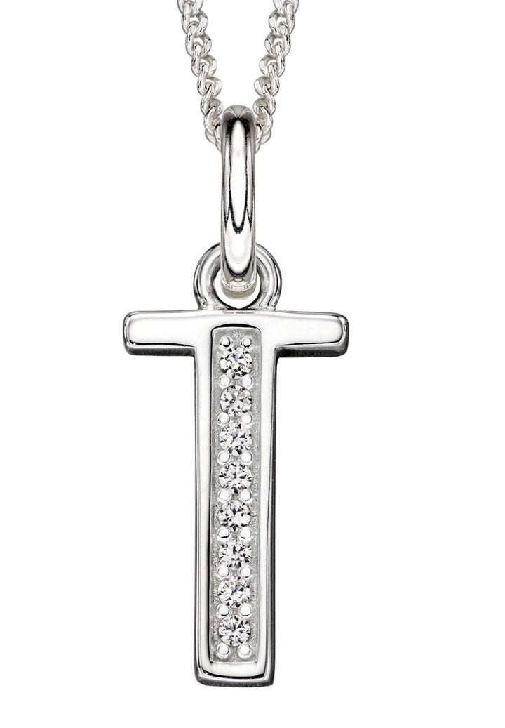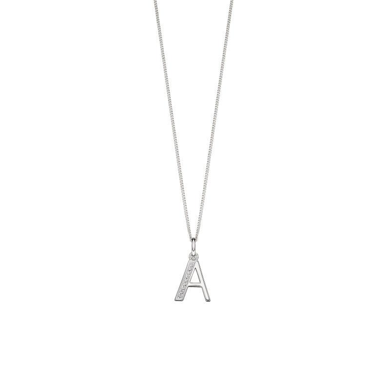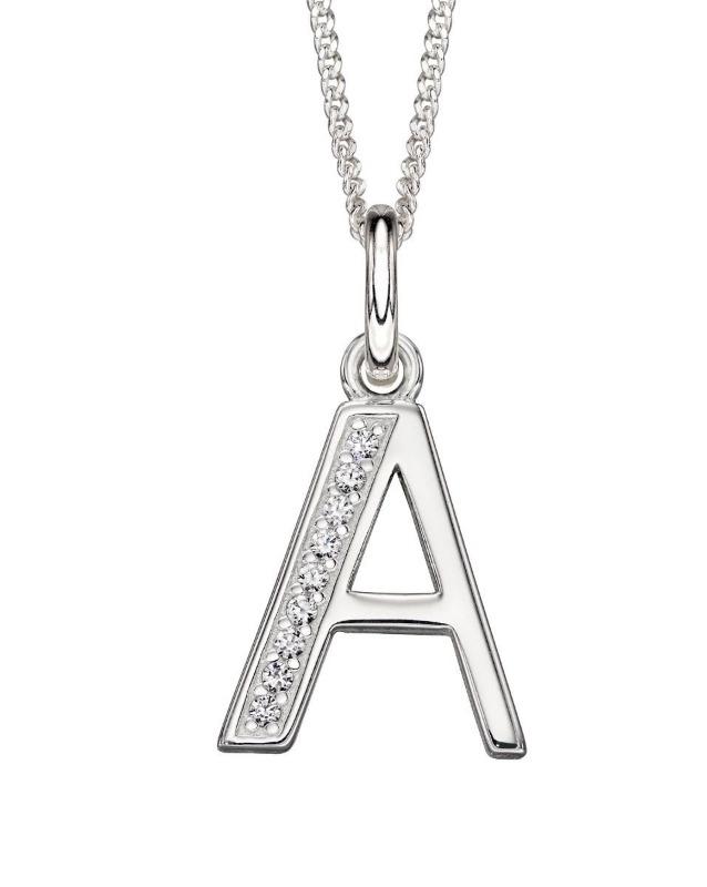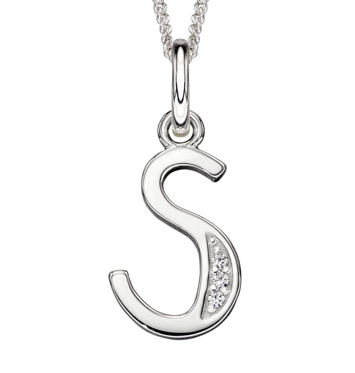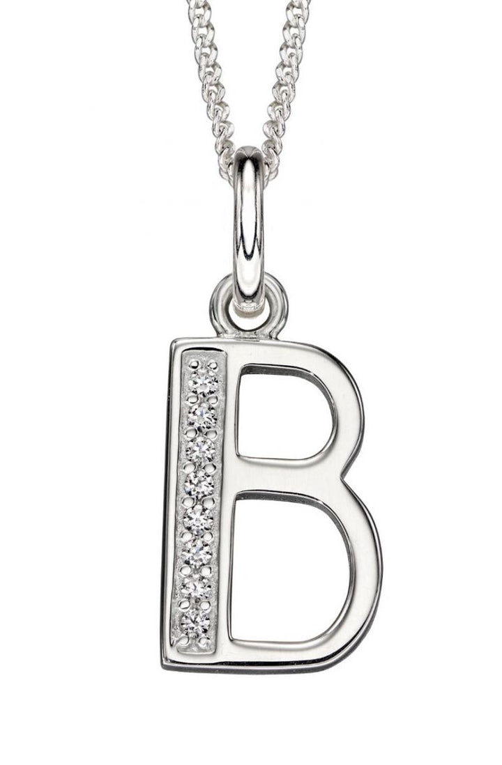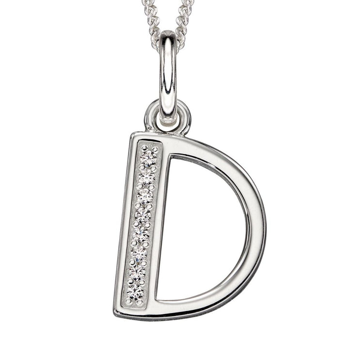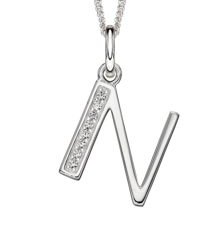 This sterling silver necklace features a pendant showcasing a sparkling cubic zirconia letter charm, a perfect personalized touch. The 18-inch chain is crafted in a classic curb style, meaning its interlocking flat links create a smooth, substantial feel against the skin.