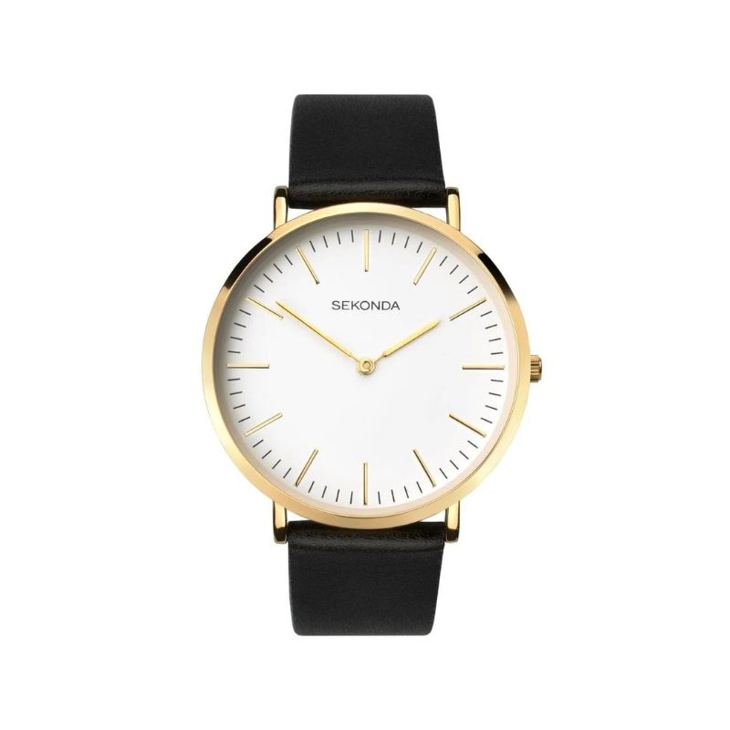 The Sekonda 1344 men's watch offers a classic and refined aesthetic with its crisp white dial, complemented by elegant gold-tone hands and batons.