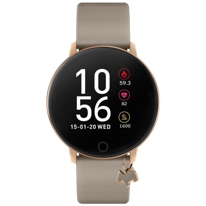This Radley ladies' smartwatch is the perfect blend of style and functionality. Its rich espresso-coloured strap is complemented by the signature Radley dog charm, a touch of playful sophistication for your wrist.