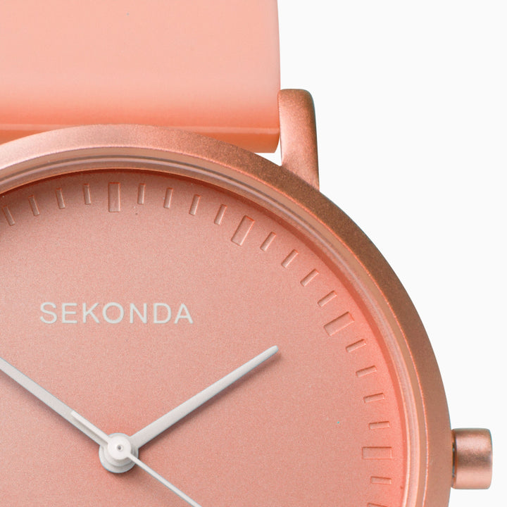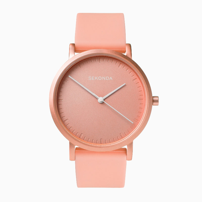 This Sekonda ladies' watch offers a delightful blend of style and practicality. The vibrant pink dial is perfectly complemented by a soft, comfortable pink silicone strap, designed for everyday wear.