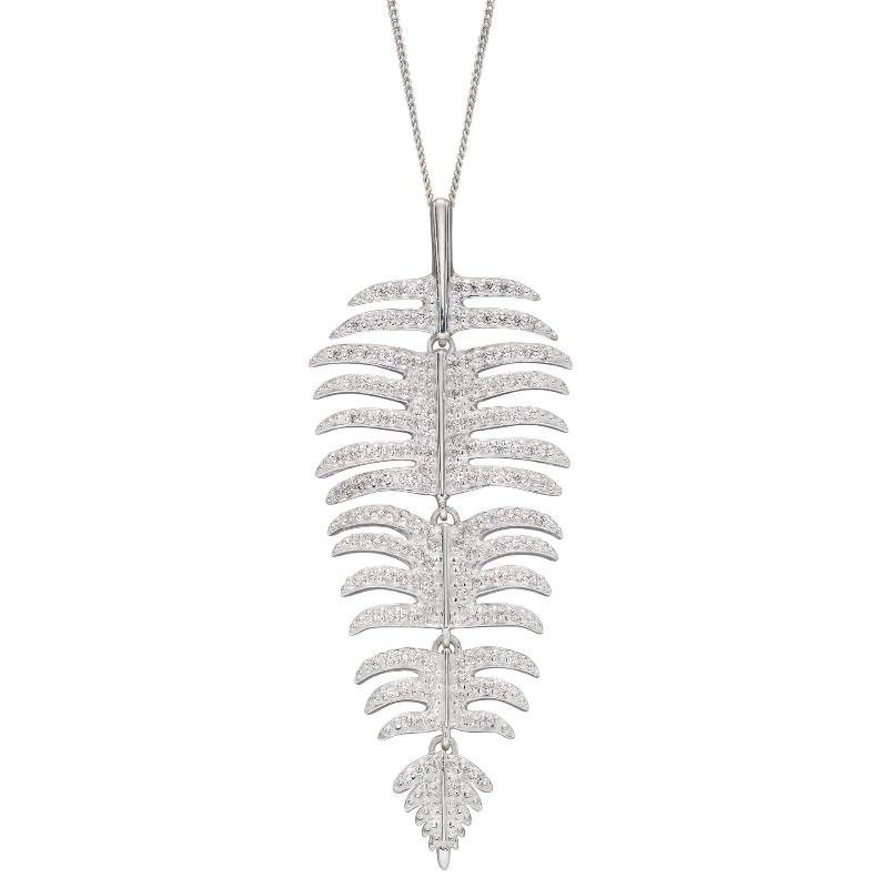 Silver Cubic Zirconia Palm Leaf Pendant