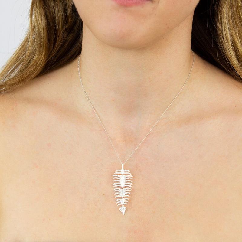 Crafted from gleaming sterling silver, this pendant captures the elegant sweep of a palm leaf.