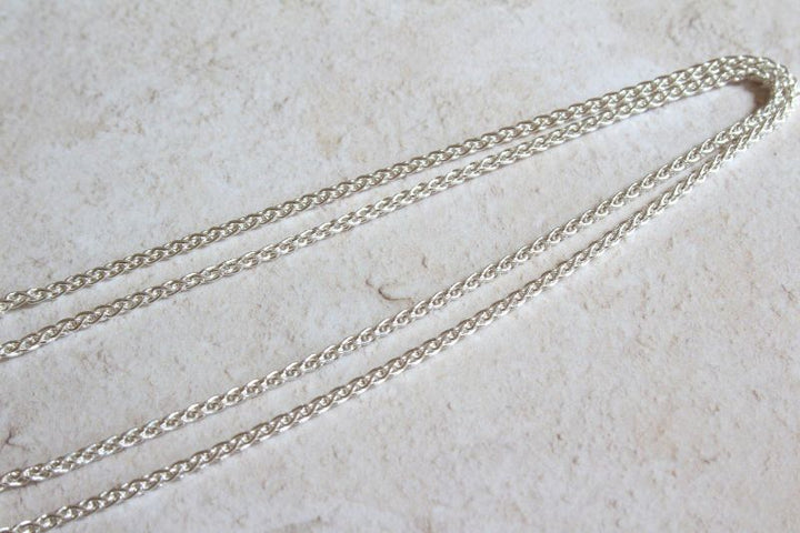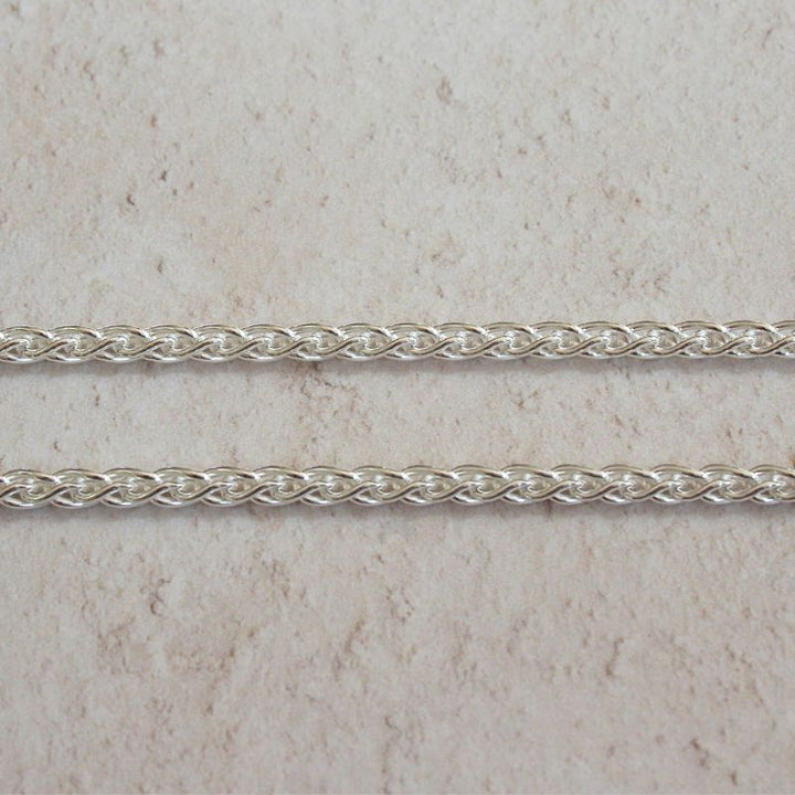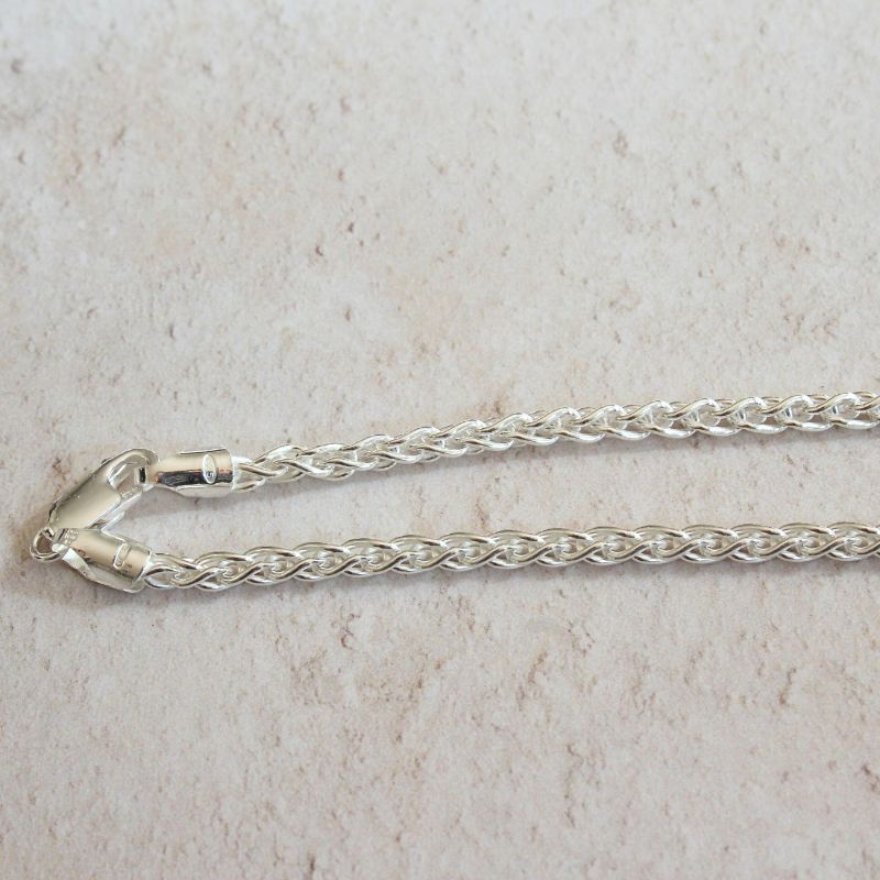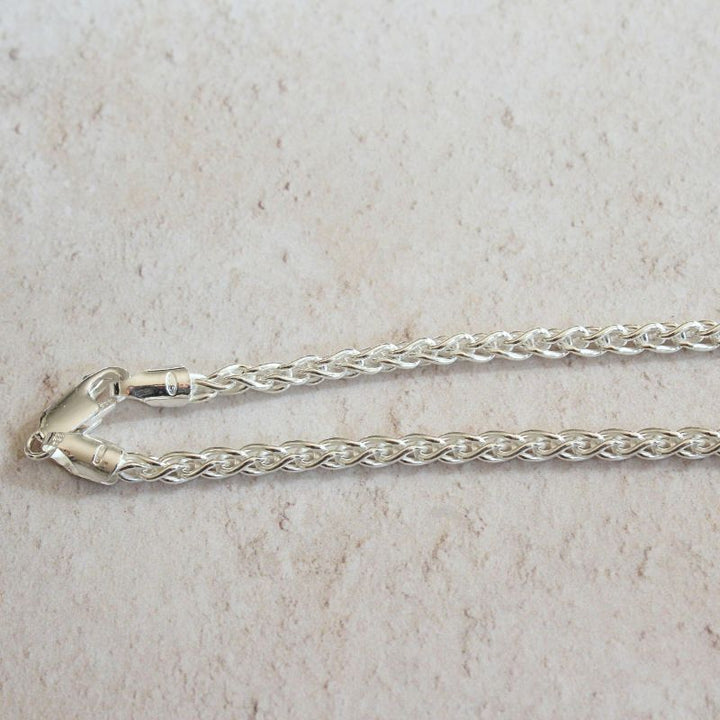 The elegant Spiga chain, also known as a wheat chain, is crafted from gleaming sterling silver.