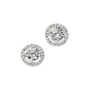Round cubic zirconia stones take centre stage, each one embraced by a halo of pavé-set smaller stones. This delicate pavé setting creates a dazzling shimmer, maximising the brilliance of the central stones.
