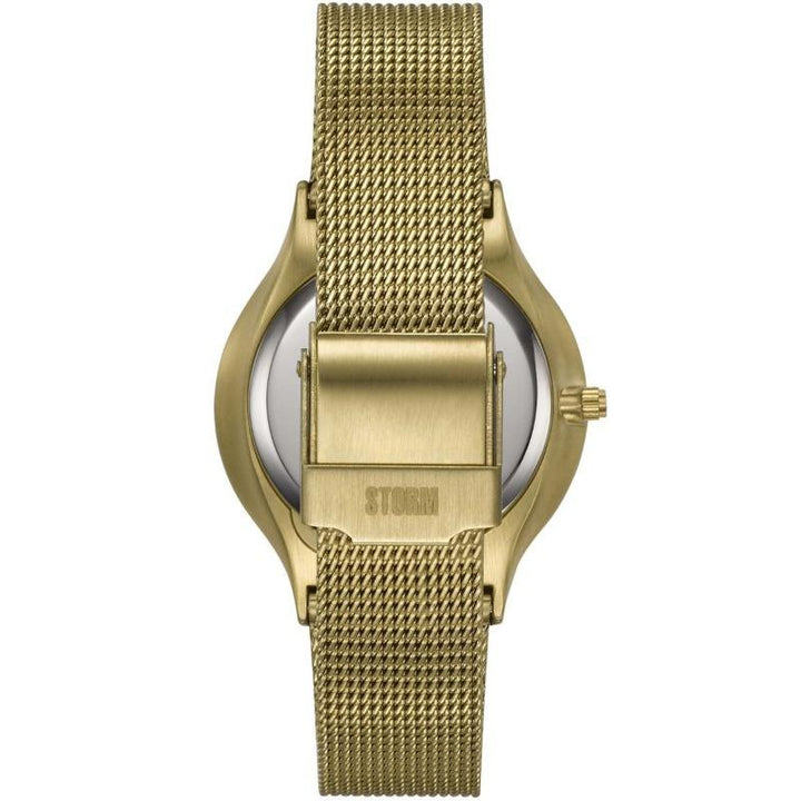 Introducing the Storm Mini Sotec, a timepiece that effortlessly blends modern design with enduring quality. Its teal dial, a captivating shade reminiscent of the deep ocean, is punctuated by elegant gold hands and batons, creating a striking contrast that catches the light beautifully.