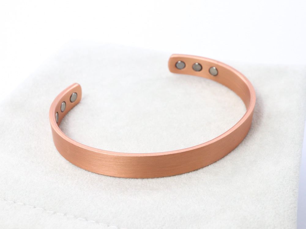 This men's bangle offers a contemporary twist on a classic design, crafted from warm-toned copper and featuring a wide, substantial band. Subtly embedded within are six powerful neodymium magnets, renowned for their exceptional strength.
