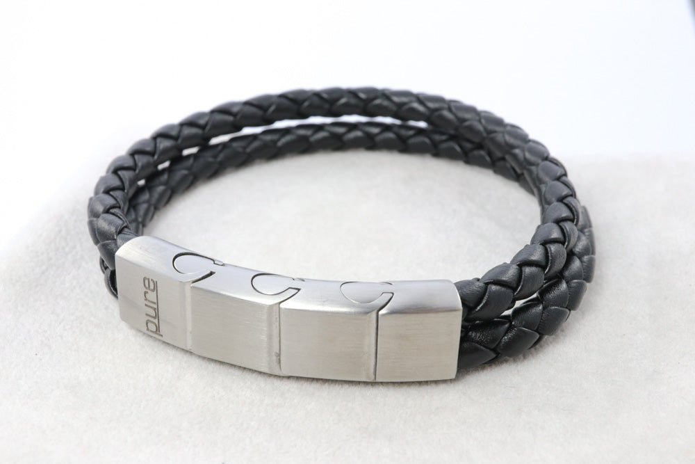 Magnetic Plaited Leather Bracelet for Men in Brown